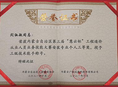 我司閆淑敏獲得《內蒙古自治區第三屆“慧云杯”工程造價從業人員業務技能大賽》個…